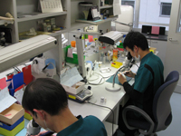 ほとんどの歯科医院は、被せ物は技工指示書と呼ばれる紙1枚だ けで外注業者に依頼している為、仕上がりに絶えず不安が残りま す。東杏会では「東杏会デンタルラボ」設立によりこうした問題は 解消されました。歯科医師と歯科技工士が綿密に話し合い、細か いチェックが必要な時は、歯科技工士が来院して立ち合うこと で、患者様一人ひとりに最適な被せ物を作る体制を整えています